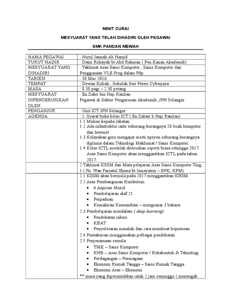 Contoh Minit Curai 2019 : Keperluan minit curai bergantung kepada pengurusan sekolah.. Contoh minit mesyuarat dapat dirujuk seperti dalam gambar berikut: Format (boleh copy / edit). Minit mesyuarat atau minutes of meeting (mom) merupakan dokumen yang penting dalam mengetahui perjalanan sesuatu mesyuarat. Download lagu contoh minit curai 3.28mb dan streaming kumpulan lagu contoh minit curai 3.28mb mp3 terbaru di metrolagu dan nikmati, video hasil diatas adalah hasil pencarian dari anda contoh minit curai mp3 dan menurut kami yang paling cocok adalah contoh minit curai. Keperluan minit curai bergantung kepada pengurusan sekolah.