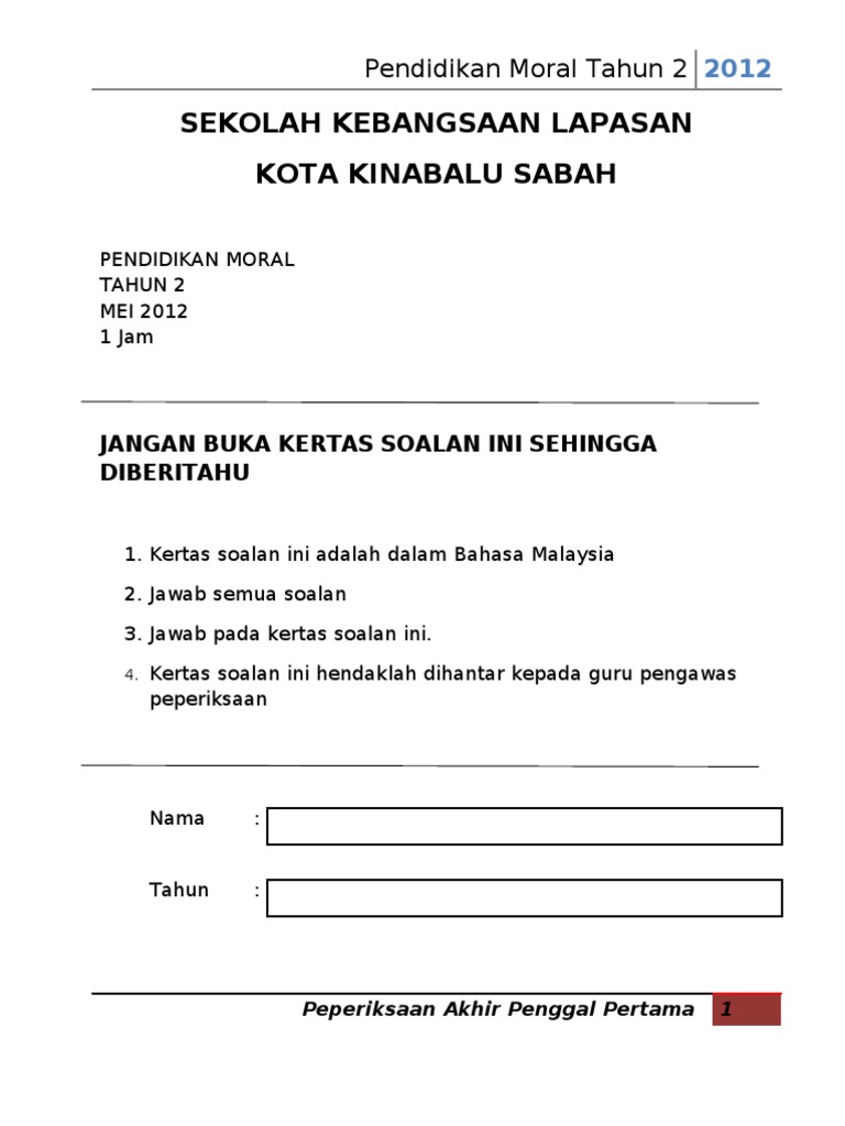 Rancangan pengajaran harian ini dibina sebagai panduan para guru untuk mengajar dengan lebih sistematik dan efektif serta. 1 ajaran agama keluarga saya tajuk : Editable fail dalam microsoft word. Soalan pendidikan jasmani tahun 2. Share & embed soalan pendidikan moral tahun 2.